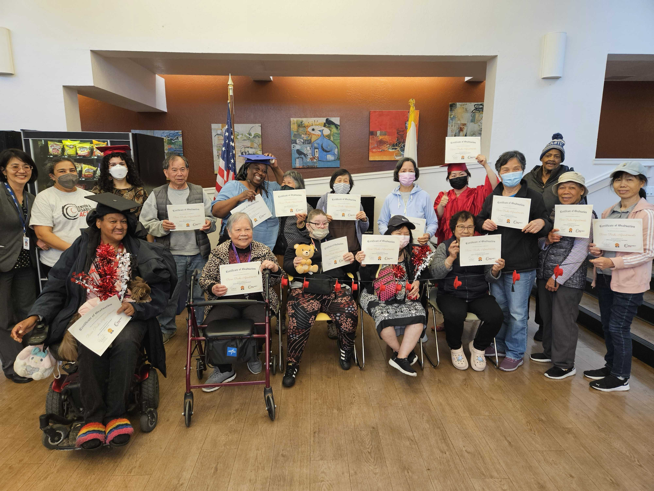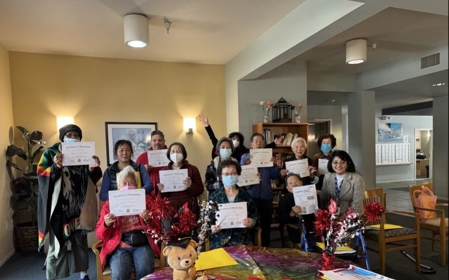 We're thrilled to celebrate two new successful Senior and Disability Survival School (SDSS) cohort graduations this summer! Participants at North Beach Place Senior Housing and Rosa Parks Apartments completed our comprehensive five-session program, gaining vital knowledge about healthcare navigation, political advocacy, housing rights, wellness, community resources, and more. These graduates are now better equipped to advocate for themselves and their communities while accessing the services they need to thrive in San Francisco.