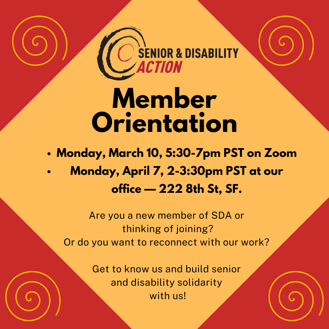 I love the educational outreach that SDA has with senior centers in San Francisco. I would love to become more involved with disability action groups in the future.