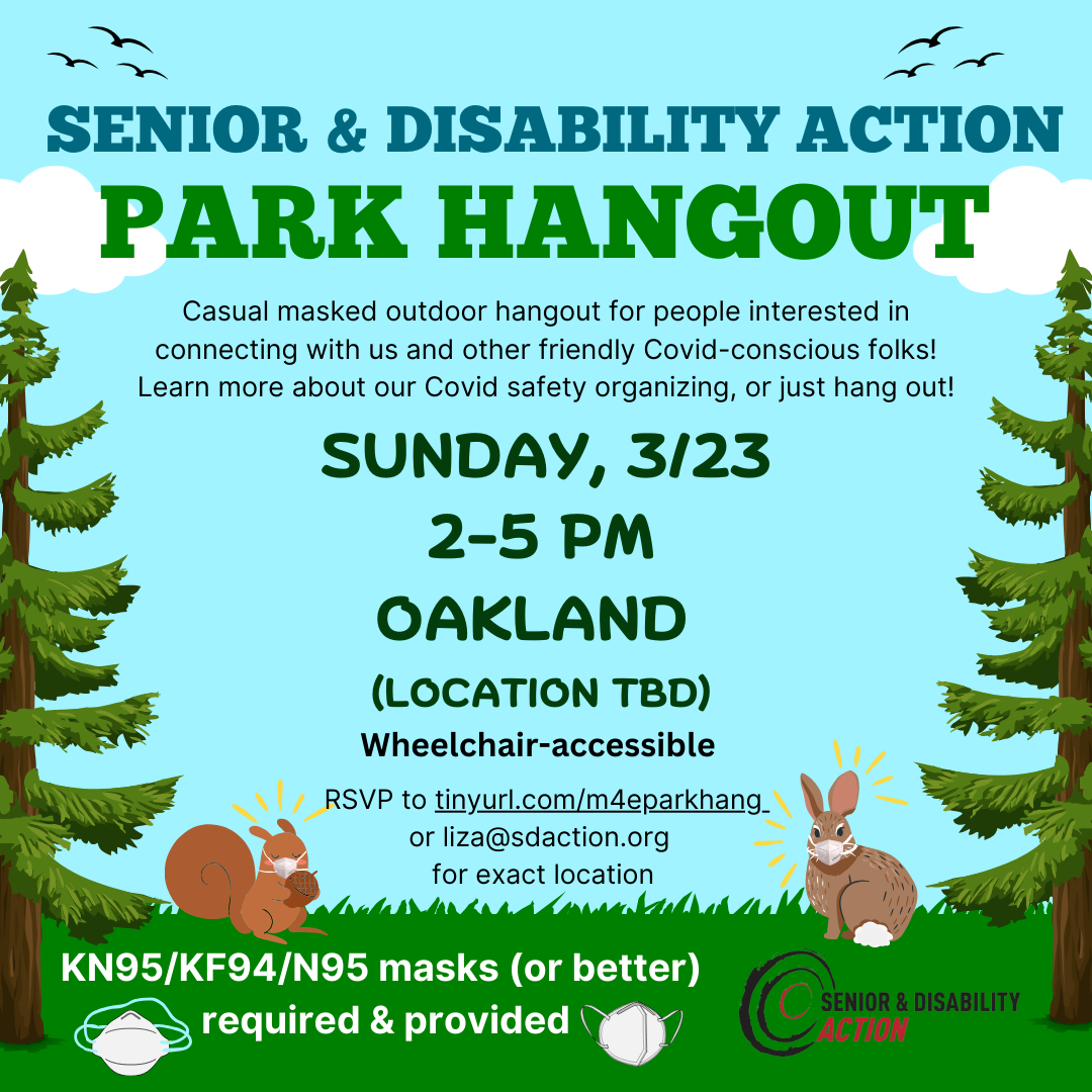 Our next masked park hang is Sunday, March 23, 2 to 5pm in Oakland (specific address TBD). We had 30 people come to February’s masked outdoor gathering. We’re so excited that our community is growing, and we would love to see you in March! More info on the M4E park hang and RSVP here.